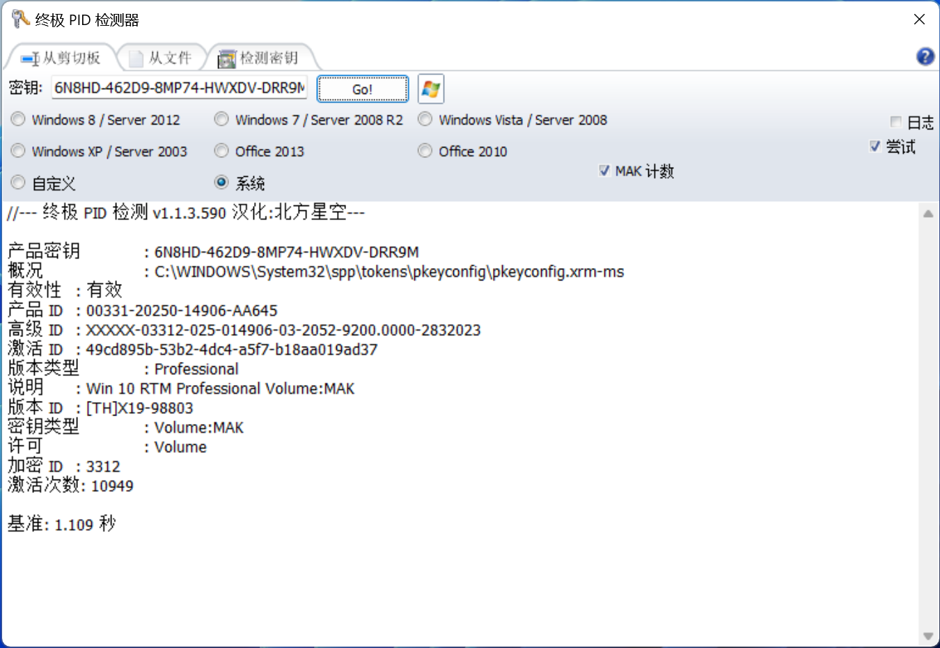 适用于 Windows 10/11 的 MAK KEY,即批量授权类型的密钥,当前剩余激活次数为:10000+