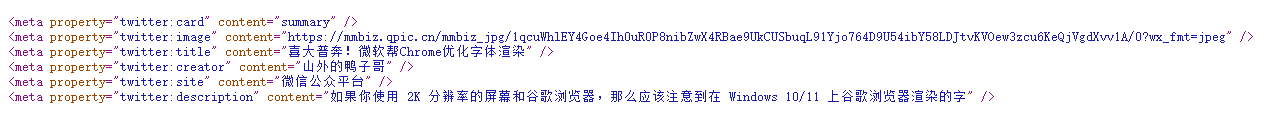 虽然埃隆马斯克已经将 Twitter 更名为 X,但开发者中心适配的这些元数据名称并未修改,所以还是以 Twitter 开头,开发者为自己的网站适配后也能显示这种卡片效果。