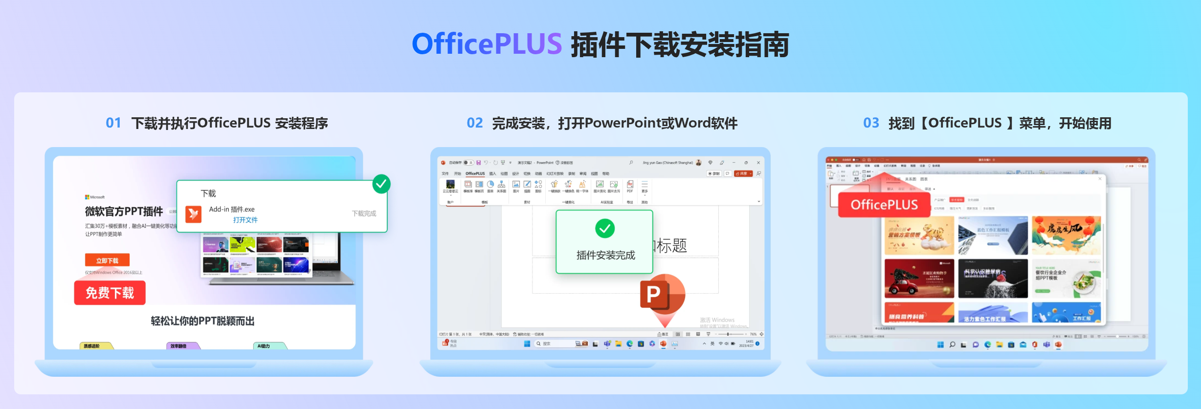 激活后点击这里下载OfficePLUS插件:https://www.officeplus.cn/addin/OPCN/ 支持Word、Excel、PPT 2016+