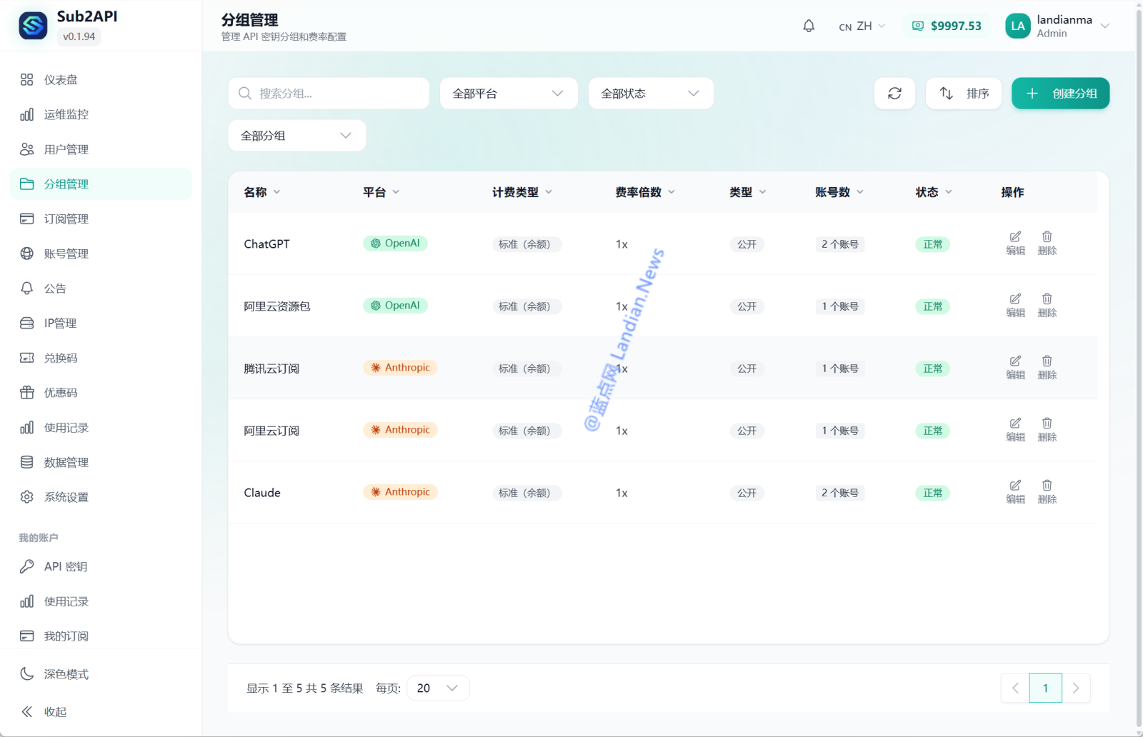 ![[龙虾教程] 自建Sub2API中转站管理多个AI账号 方便集中管理/好友共享/快速切换](https://5lnews.com/landian/2026/03/112080-4.png)