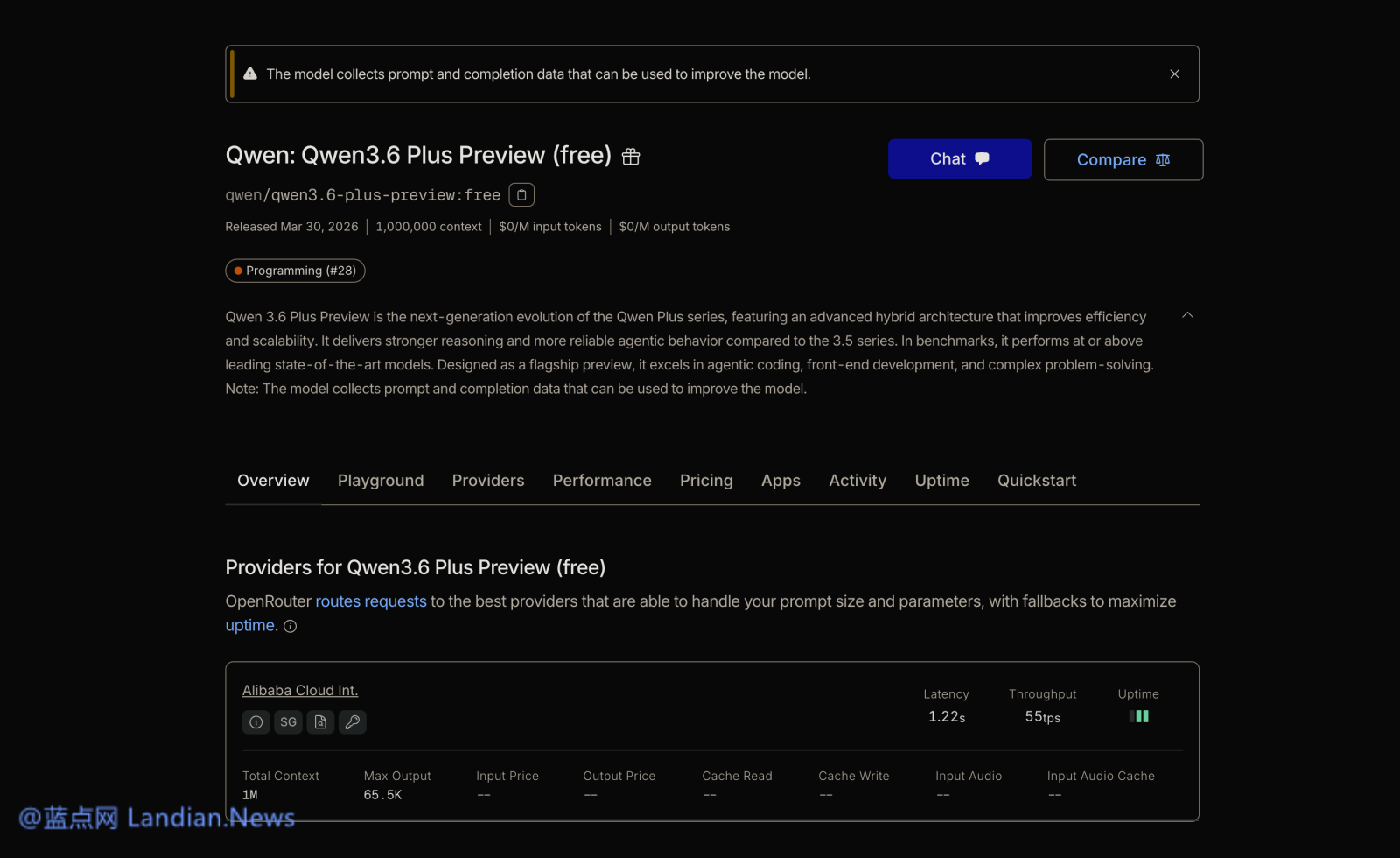 免费开蹬:支持1M窗口 千问Qwen3.6在OpenRouter上预览可免费用