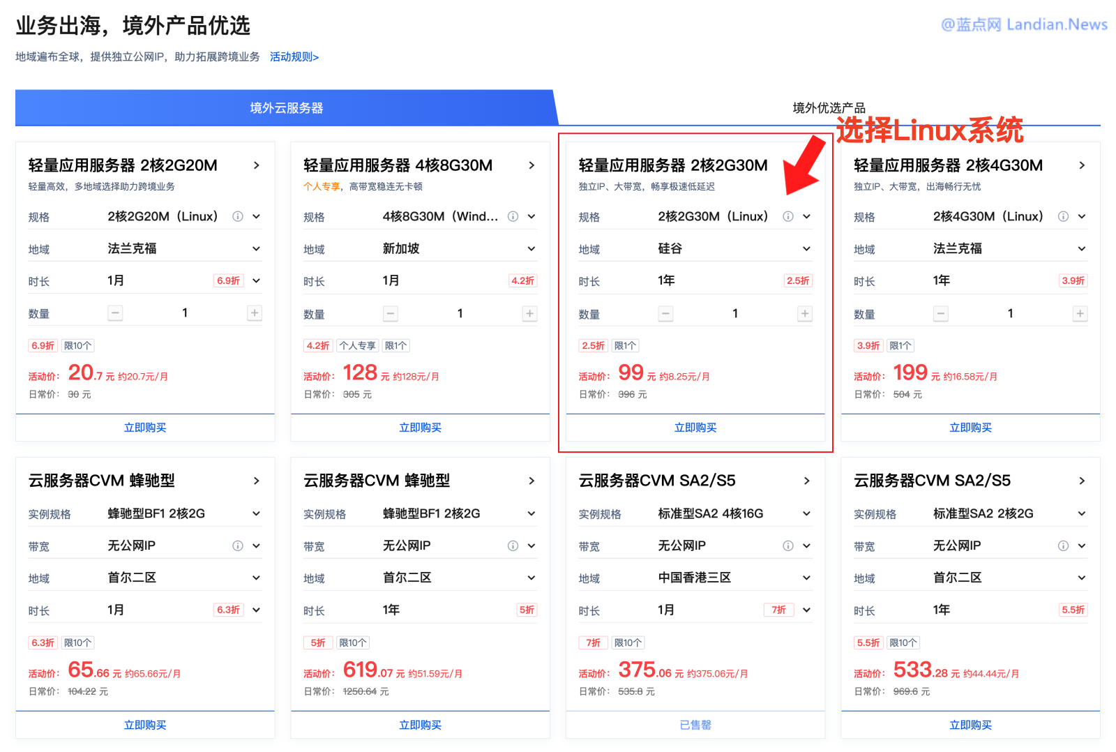 2核心+2GB内存+30M带宽+50GB固态盘+每月1TB流量:99元/年 [该机型位于活动主页业务出海境外云服务器板块]