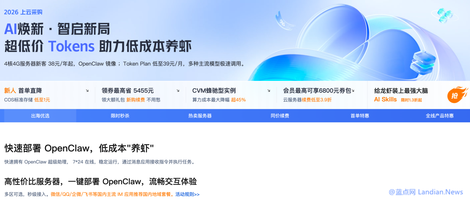 ![[抢购] 国内/境外CN2服务器特惠价99元/年 支持换IP 支持部署OpenClaw AI](https://5lnews.com/landian/2026/03/112457-1.png)