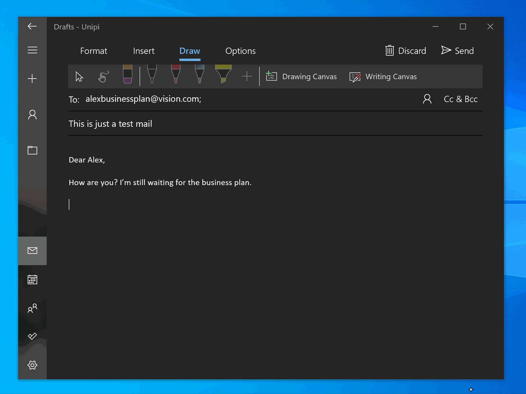 即可以在发送或者回复邮件时直接在输入区域使用手写笔书写,当然发送给其他用户的邮件不会以手写笔迹呈现。
