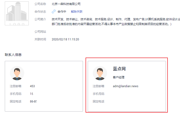 若客户经理显示5L科技则代表关联成功,若显示的两位客户经理中没有5L科技则关联失败,请联系我们进行检查。