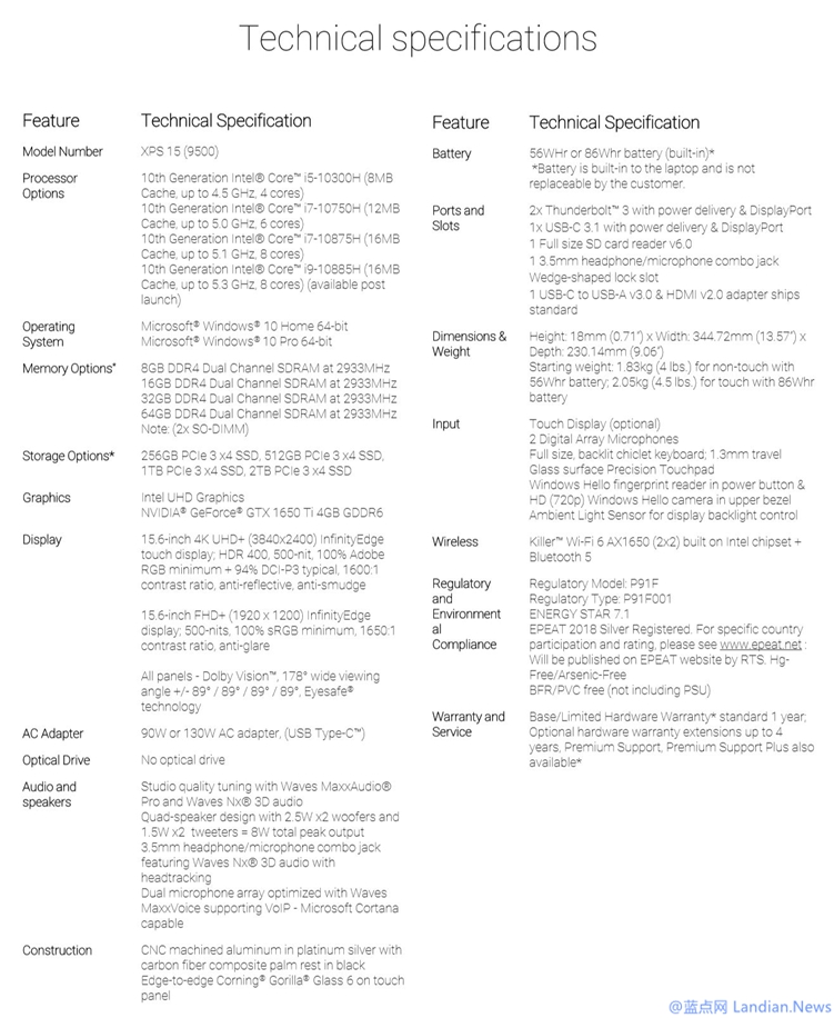 戴尔终于在今天发布了采用全新设计的 XPS 15,距离戴尔上一次更新 XPS 15 的设计已经过去了五年。这次全新的 XPS 15 9500 搭载了四面窄 InfinityEdge 显示屏、Waves Nx 3D 立体音效、第十代英特尔处理器、最高可选配的英伟达 GeForce GTX 1650Ti 显卡等,同时 XPS 15 在移动输入表现上也有所提升,比如键帽相对于上一代大了9.7%(键盘间距更小),触摸板面积增大了62%,起步价1299美元。