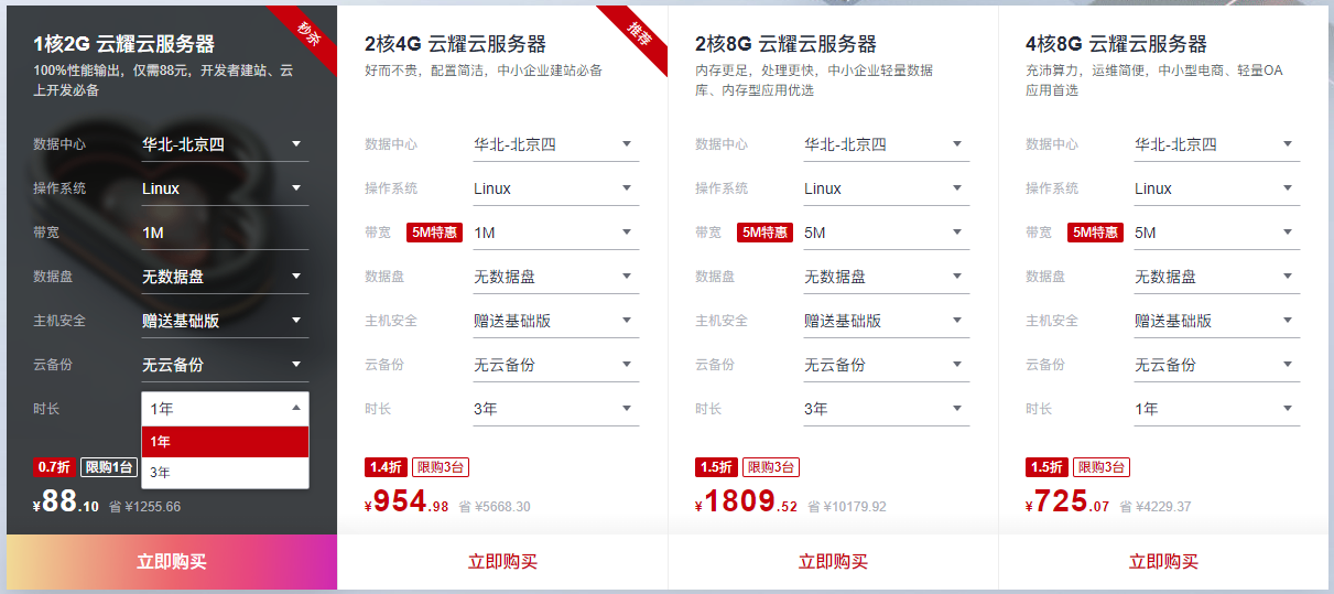 华为云1核心2GB内存1M带宽版云耀云服务器:1年版低至88.10元、3年版低至256.980元、点击这里立即抢购。