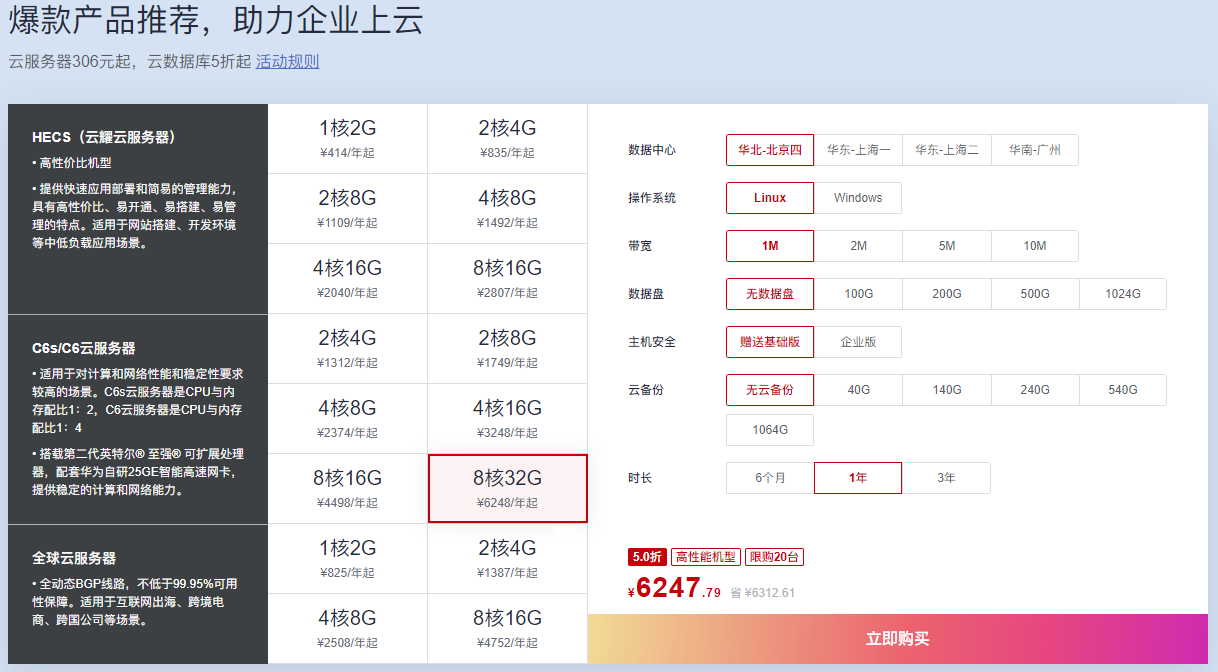当然按惯例这种优惠极高的服务器主要面向新用户,华为云这边目前也已经上线年中大促活动提供多款优惠实例。