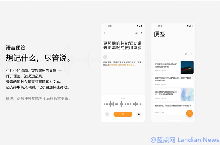“便签”作为用户平常使用较多的应用,此次也迎来了全新升级,新增了语音转文字功能,支持中英文语音转换成文字,同时还会保留语音方便用户校对。