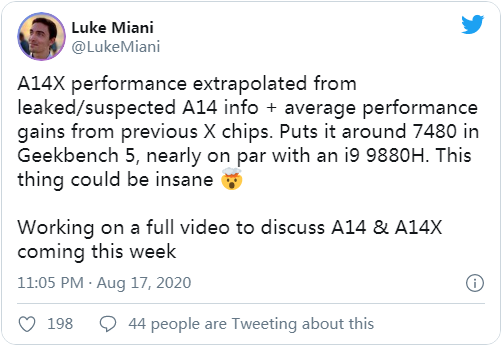 所以得益于芯片制程工艺的提升,Luke Miani 对 A14X Bionic 的爆料,可信度还是相当高的。