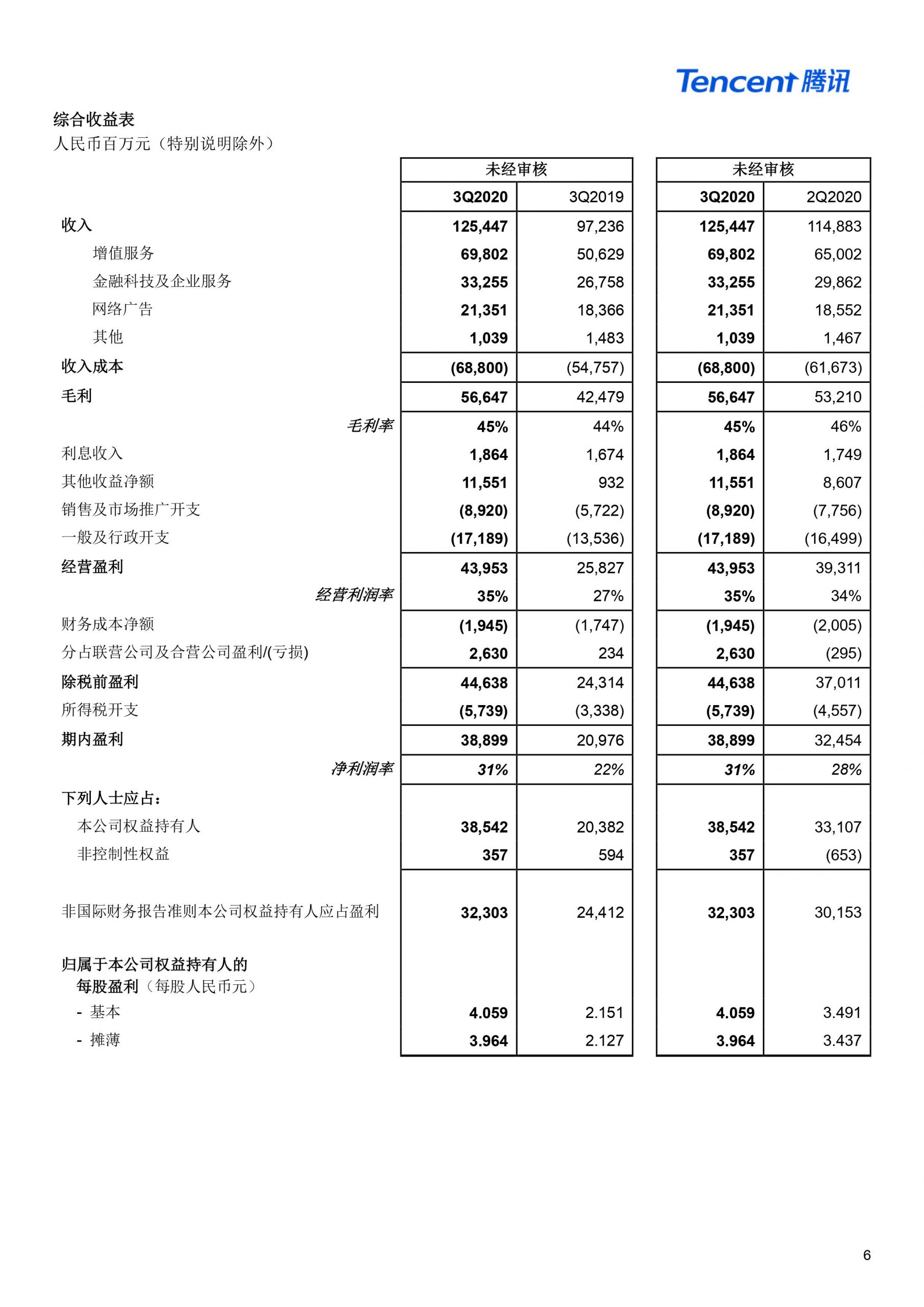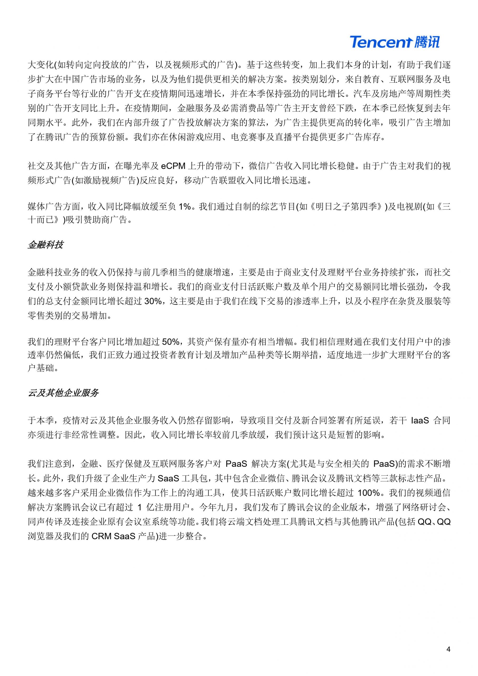腾讯控股发布2020Q3季度财报 营收1254.5亿元 微信月活用户达12.1亿