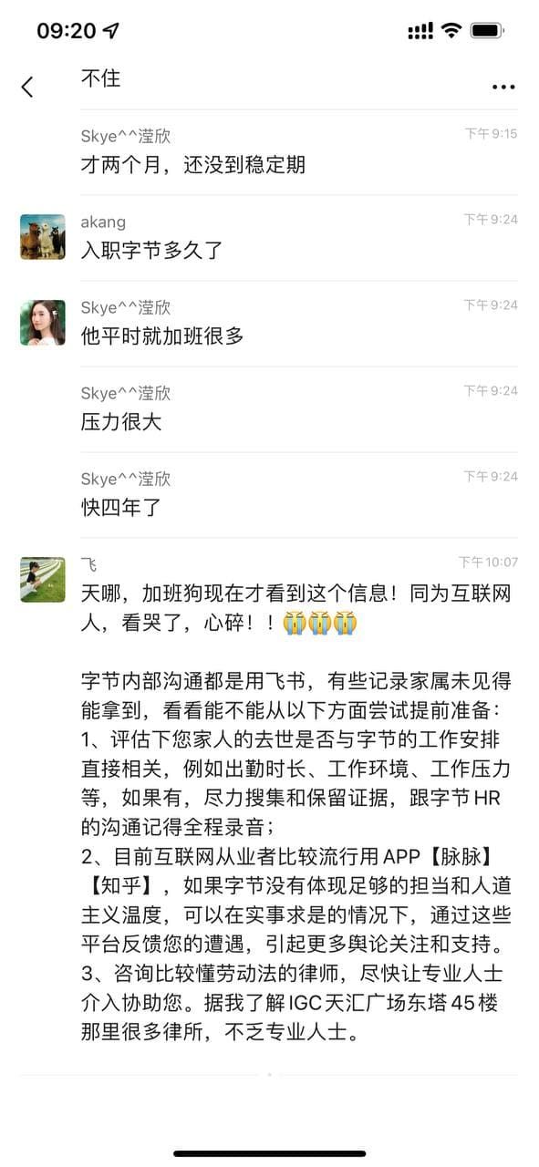 昨日晚间微博和脉脉都流传消息称字节跳动图像算法工程师吴伟猝死,随后吴伟妻子滢欣聊天记录在微信群流传。据滢欣称吴伟在字节跳动点播和多媒体平台担任图像算法工程师,在职时间近四年,平时加班很多压力很大。