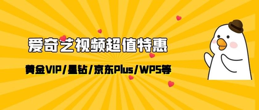 爱奇艺视频VIP会员折扣充值来喽!本次活动提供爱奇艺黄金VIP年卡、星钻VIP年卡、奇异果会员年卡、京东Plus会员年卡、WPS超级会员、喜马拉雅半年卡等。