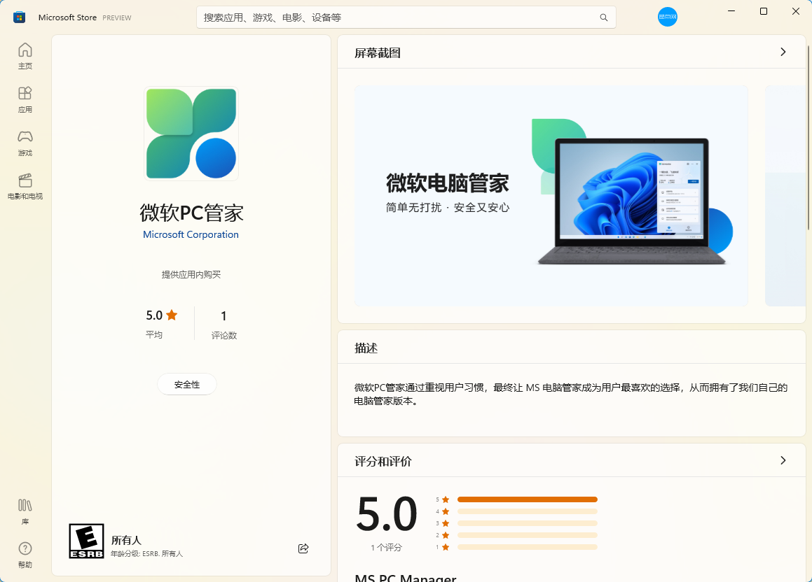 微软电脑管家登陆微软商店 简单无打扰 支持杀毒和垃圾清理等